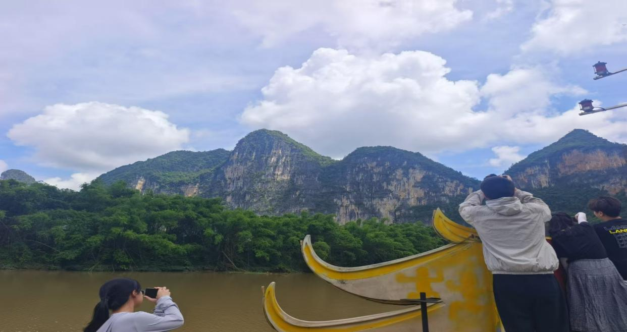 当天上午,同学们首先抵达了宁明花山温泉小镇,并在工作人员的带领下对温泉小镇的旅游设施建设、商业运营以及旅游服务状况等旅游业态进行了实地考察。下午14点,同学们抵达了花山码头,乘坐游船前往花山岩画景区参观。宁明花山岩画景区是“左江花山岩画文化景观”的重要组成部分,花山岩画举世闻名,历经千年风雨都不褪色,十分壮观。在参观过程中,当地导游为同学们详细介绍了花山岩画的历史、文化价值以及花山岩画景区的运营模式等。通过观赏花山岩画和导游的讲解,同学们更加深入的了解了这份珍贵的文化遗产,深入了解古代壮族人民的智慧、信仰和艺术,感受他们与大自然和谐相处的生活方式。