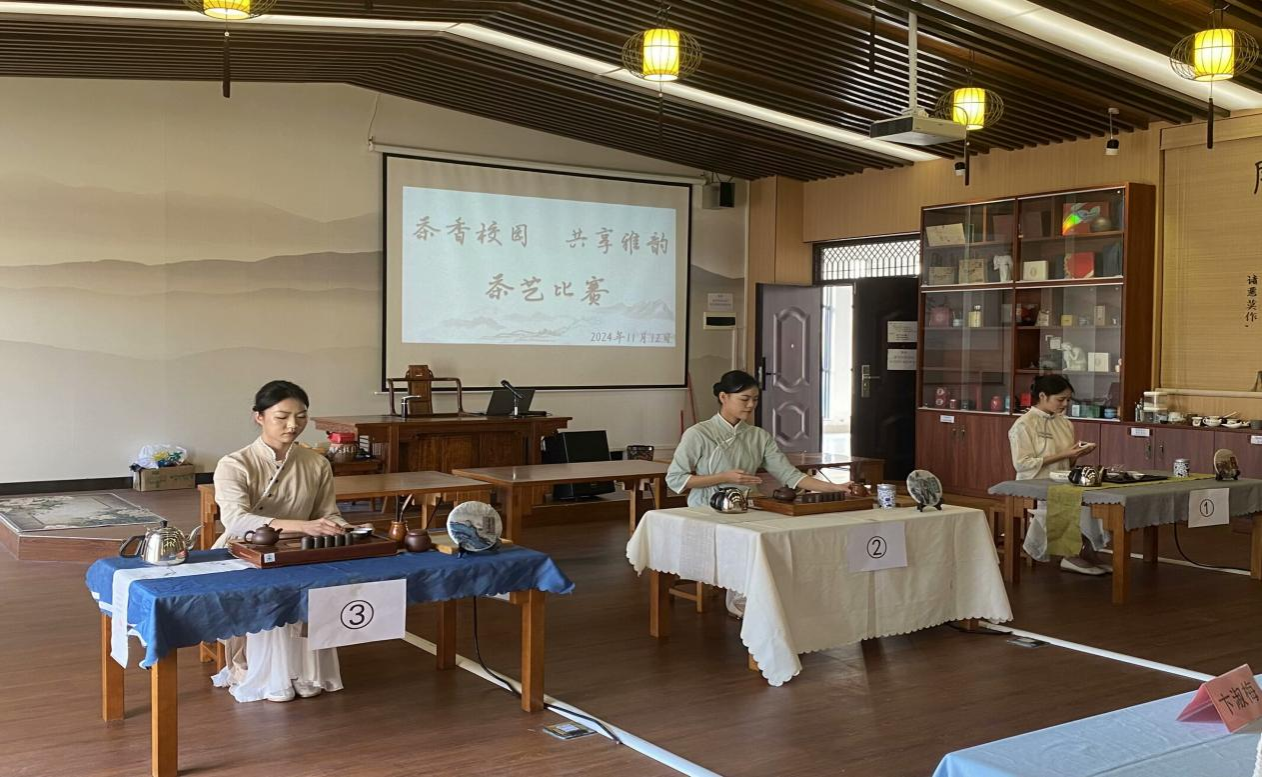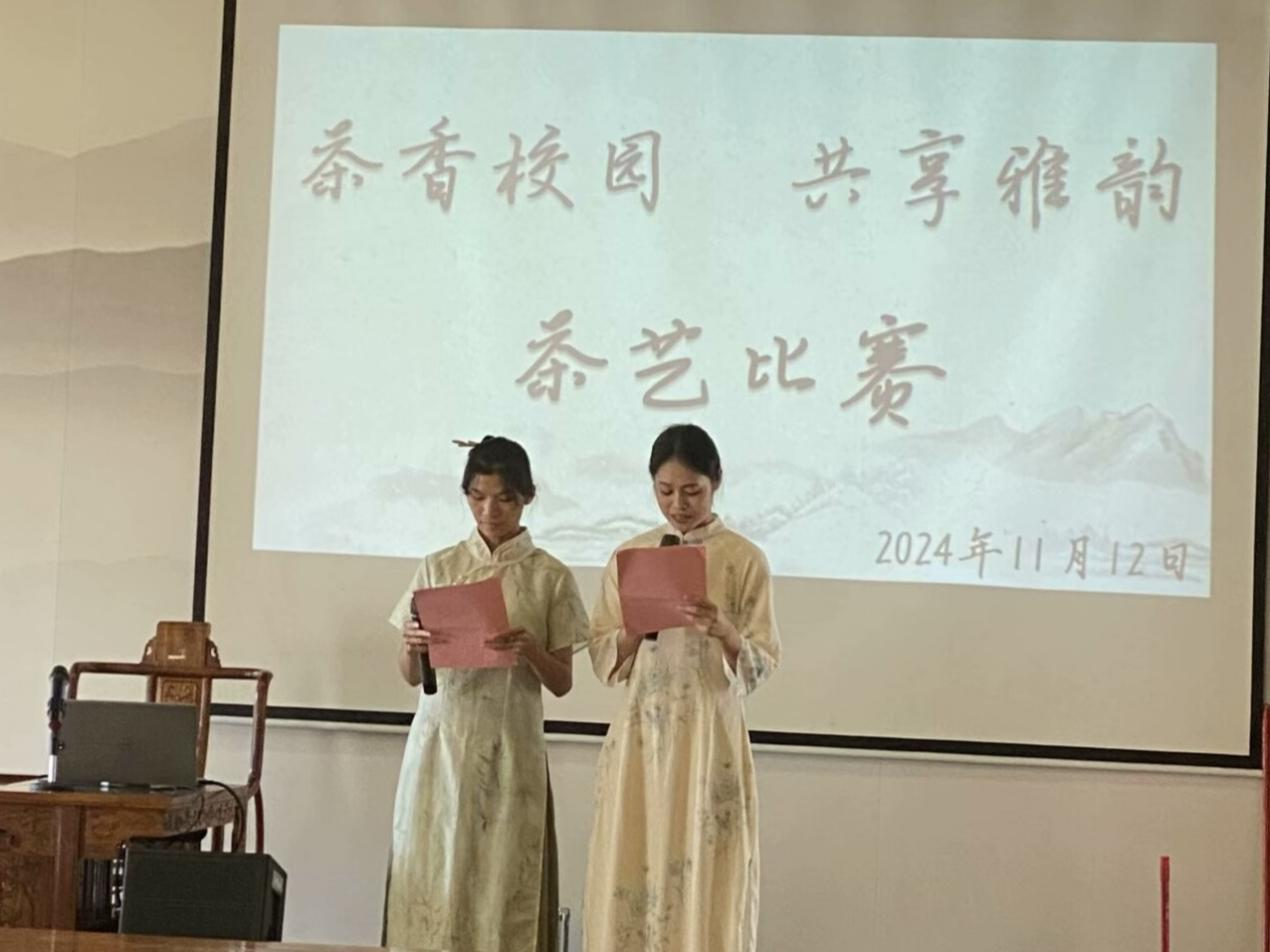 1月12日下午,由太阳成集团tyc33455cc主办、太阳成集团tyc33455cc茶艺社承办的“茶香校园,共享雅韵”主题的茶艺比赛在武鸣校区地信楼一楼茶艺室举行。此次活动邀请公司辅导员陈春容老师、茶艺师谢淑谊和卞淑梅、茶艺社社长张鹏作为此次茶艺比赛评委。此外,邀请茶艺社对茶艺感兴趣的学员代表全程观赛学习,众多热爱茶艺的同学们齐聚一堂,共同开启了一场充满韵味与文化气息的校园茶艺之旅。