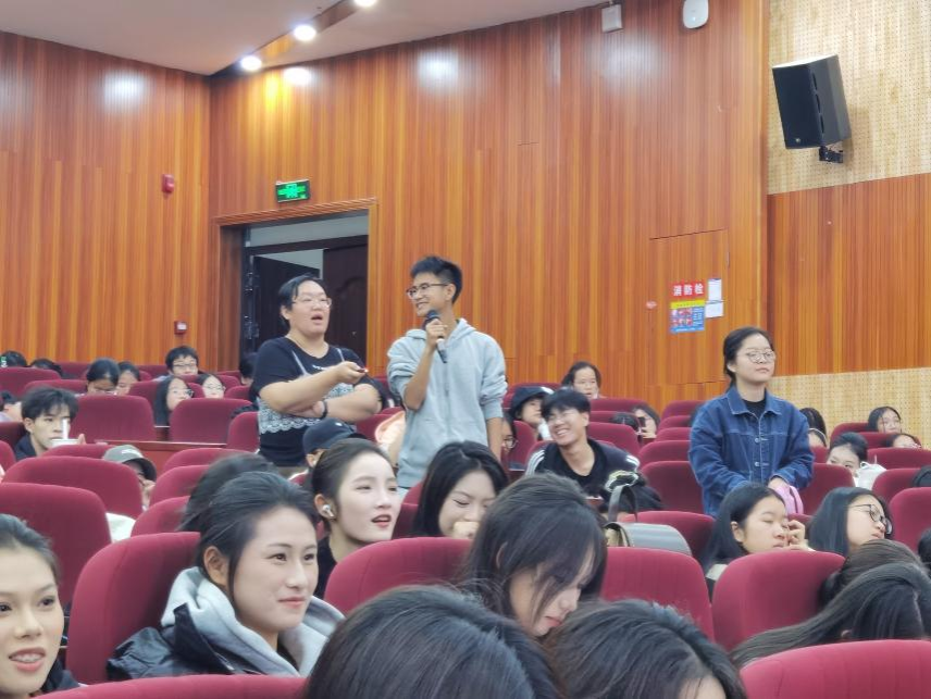 随后,刘医生以深入浅出、通俗易懂的风格开场,借助直观的PPT知识展示和防艾宣传短片,将艾滋病复杂的病理机制拆解讲述,让同学们清晰知晓艾滋病病毒如何攻击人体免疫系统。在谈及传播途径环节,专家摒弃晦涩术语,以生活场景举例,点明血液传播、性传播、母婴传播三大路径细节,纠正诸如“日常接触会感染”的常见误区,现场同学专注聆听、不时记录要点。并在随后的互动答疑阶段气氛热烈,同学们纷纷举手提问,涵盖防艾检测时机、隐私保护、对高危行为界定等多元疑惑。刘医生一一耐心回应,并现场演示正确使用安全套的方法,用实物操作与幽默讲解化解尴尬、传递实用防艾技巧,引得阵阵掌声。