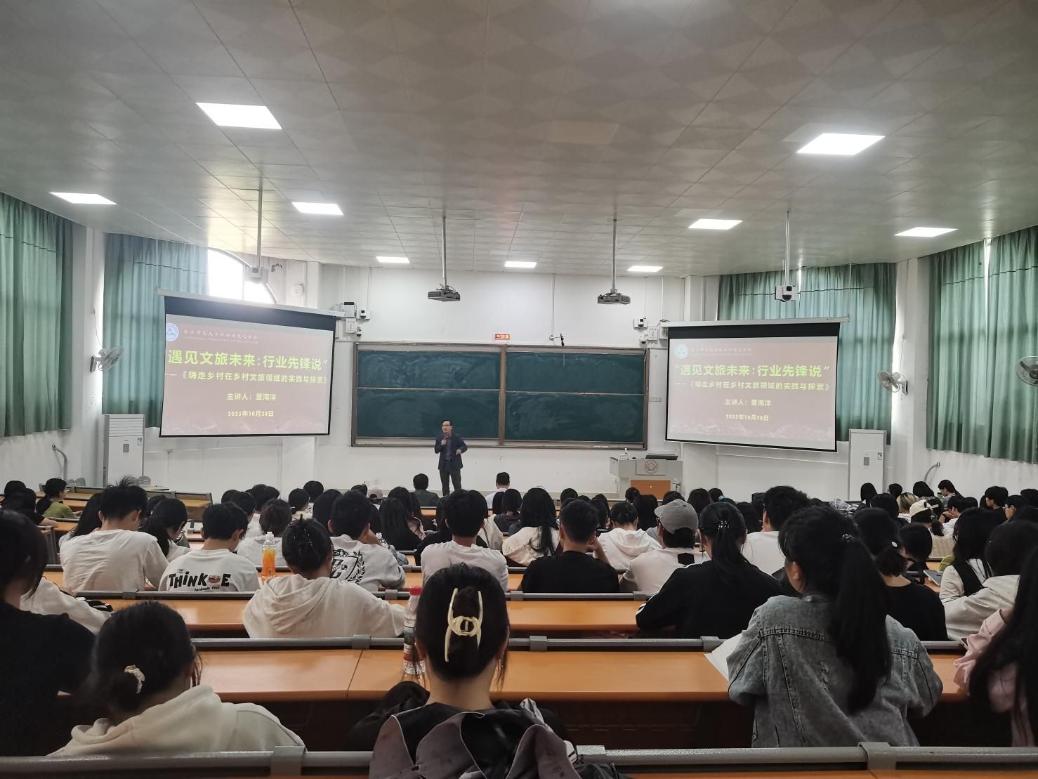 为深化旅游管理专业员工对乡村文旅产业的理解,增强专业实践能力,10月28日,太阳成集团tyc33455cc成功举办“遇见文旅未来 行业先锋说”专题讲座。本次讲座特邀覃海洋担任主讲,聚焦乡村文旅发展前沿动态,为师生提供了一场理论深厚、实践性强的学术交流。太阳成集团tyc33455cc经理段文军、曹世武副教授、方世巧教授、郭亮博士及各年级旅游管理专业员工代表参加了本次讲座。
