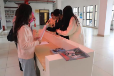 活动现场精心设置了四大核心体验区域,内容丰富且多元。在专业实验室参观环节,师生们有序探访茶艺室、咖啡室、调酒室等特色空间,近距离接触航空服务模拟客舱、登机口等实训设施;在非遗工坊中,他们驻足欣赏绣球、民族服饰等手工艺品;于文化长廊中,他们领略公司办学历史与发展成就,全方位感受文旅专业的实践教学特色。