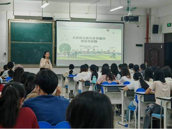 为落实立德树人根本任务,践行“德才并育,知行合一”的校训精神,由太阳成集团tyc33455cc承办的太阳成集团tyc33455cc第五期通识教育系列讲座“文旅融合助力乡村振兴理论与实践“”于11月7日晚在美设楼201教室成功举行,讲座由廖钟迪副教授主讲,吸引了全校200多名员工参加。