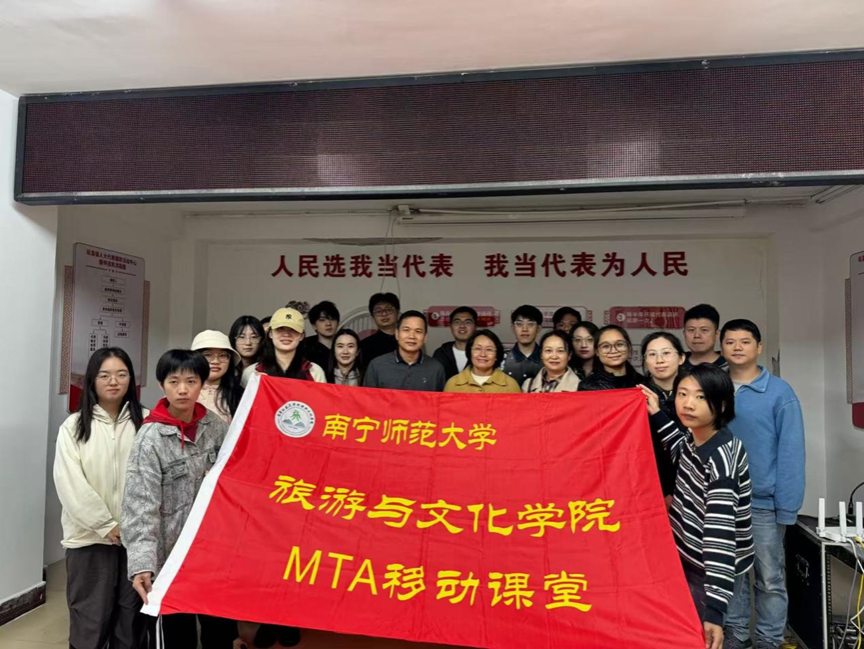 11月18日上午,太阳成集团tyc33455cc2025级旅游管理专业研究生走进西乡塘区坛洛镇开展《旅游产业经济分析》移动课堂活动,14名研究生在公司陈红玲教授带领下,与坛洛镇4名领导干部和下楞村2名村委干部联动交流,开启文旅调研实践。