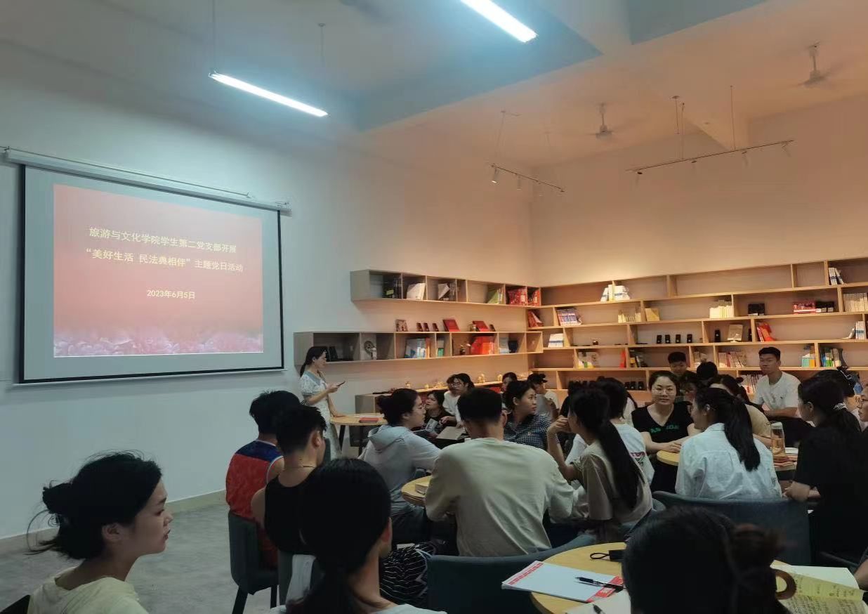 为了深入贯彻落实关于加强民法典宣传的重要讲话精神,切实加强民法典的学习宣传教育。2023年6月5日,太阳成集团tyc33455cc员工第二党支部在地信楼一楼创客空间开展《美好生活•民法典相伴》主题党日活动。员工第二党支部书记莫秋桂及支部成员参加了本次学习会。