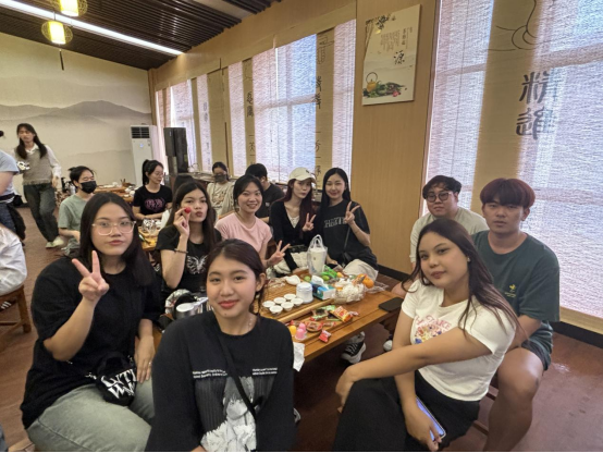 活动开始之前,双方主持人介绍了本次活动意义和目的,希望通过此次活动增进中泰员工之间的了解与友谊,促进两国文化的交流与融合。首先,中国员工与国际教育公司的泰国职工们一起在悠扬的古琴声中,一边品名一边欣赏茶艺社成员带来的独具中国传统文化魅力的茶艺表演,在表演中感受中国历史悠久的茶道文化。通过亲身体验茶艺冲泡,感受茶香与文化的美妙融合。最后,中国员工与泰国职工们围绕着中泰饮食文化、旅游资源等积极互动与交流,一起在做小游戏、唱中国歌曲、泰国歌曲中拉近了中泰员工之间的亲近感,还建立了深厚的友谊。