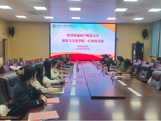 广西工业职业技术公司装备智造公司党总支梁艳娟书记对公司一行的到来表示热烈欢迎,并简要介绍了广西工业职业技术公司和装备智造公司的整体情况、办学规模以及党建工作成果。公司党委组织员姜宁对梁艳娟书记的热情接待表示感谢,并对公司近年来在人才培养、学科发展、平台建设和党建“双创”等工作进行了介绍,他表示广西工业职业技术公司装备智造公司在党建“双创”方面的探索和实践为旅游与文化公司党建工作提供了宝贵的经验,特别是在如何将党建工作与公司产品、科研创新、社会服务等方面深度融合,具有很强的借鉴意义。希望以此次交流学习为契机,进一步加强沟通与合作,互学互鉴,共同探索新时代党建与育人工作的新模式、新路径。交流会上,公司教工党支部书记甘政博士、研究生党支部书记陈春容老师分别就所负责的全国样板支部建设情况和取得的成绩以及辐射带动作用进行了详细介绍。