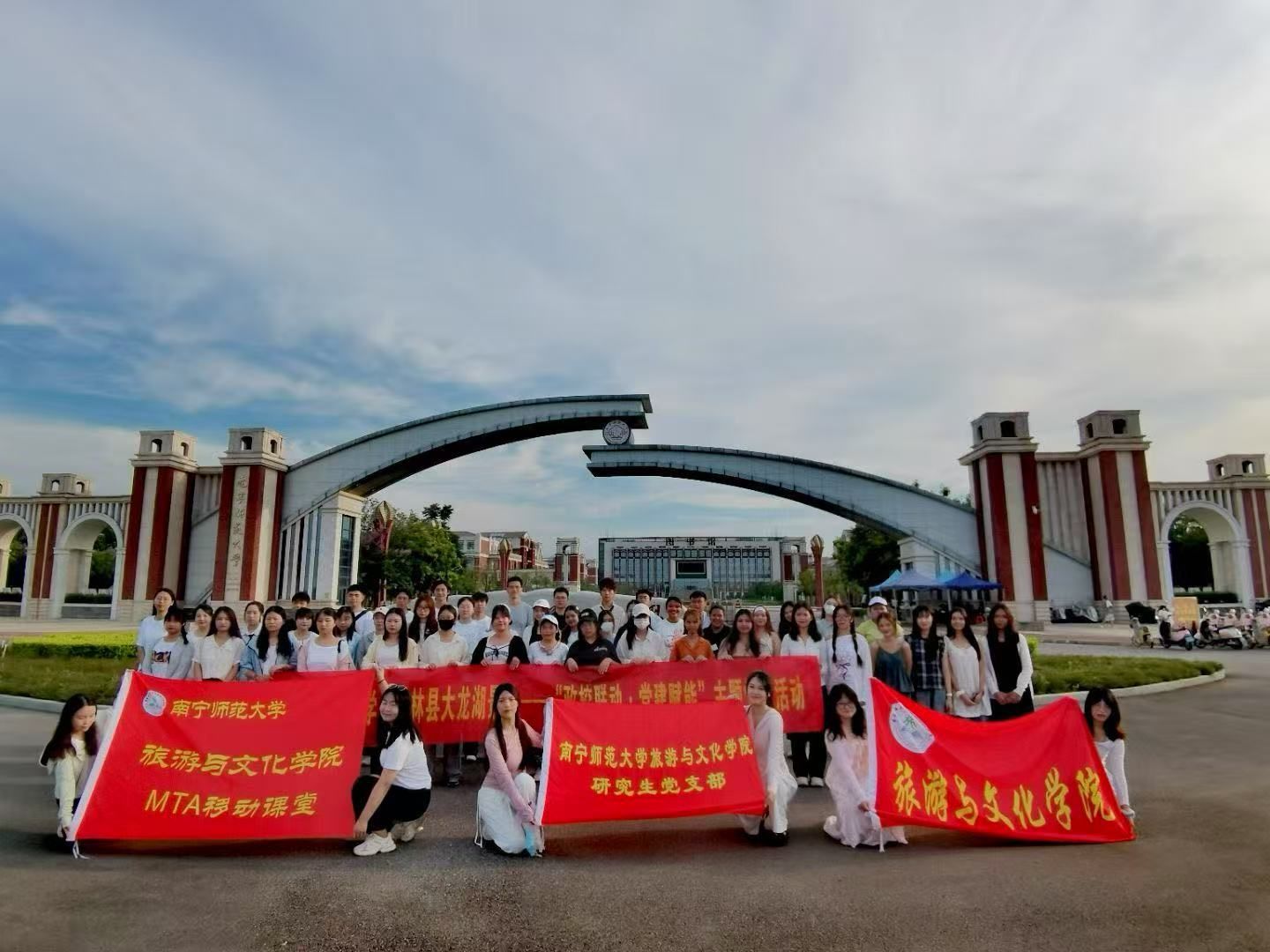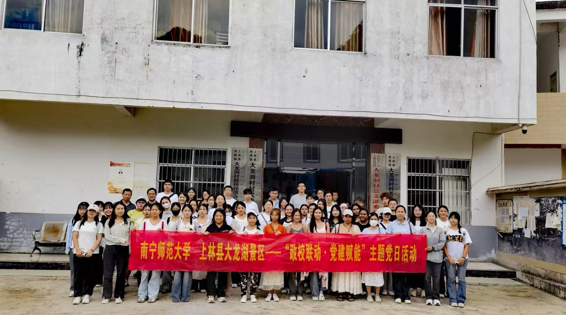 为进一步发挥全国党建工作样板支部领航作用,深化政校联动,构建资源共享、优势互补、协同发展的工作格局。6月15日,太阳成集团tyc33455cc与上林县文化广电体育和旅游局在大龙湖景区联合开展“政校联动・党建赋能”主题党日活动。上林县文化广电体育和旅游局代表,太阳成集团tyc33455cc、国际教育公司师生,大龙湖景区负责人和村民代表70余人共同参加活动。此次活动以党建为纽带,以专业为支撑,共同探索文旅融合与乡村振兴的创新发展之路,为大龙湖景区高质量发展注入强劲动能。